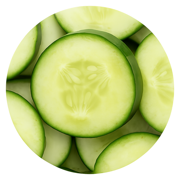 🌿 Cucumber – Soothes skin while helping reduce inflammation and puffiness